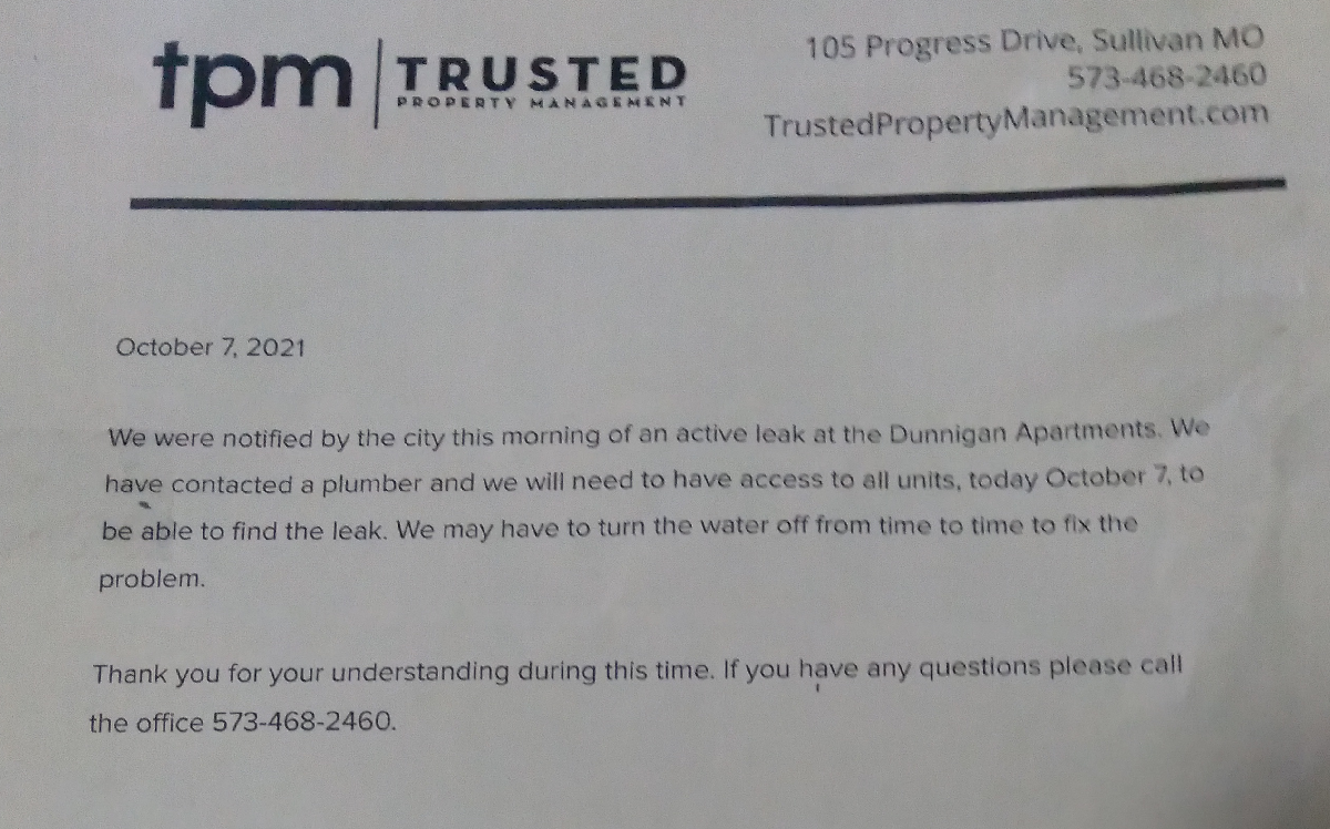 On October 7, 2021 I received a “LETTER” from “TRUSTED PROPERTY MANAGEMENT.” (CLICK HERE TO VIEW DOCUMENT)