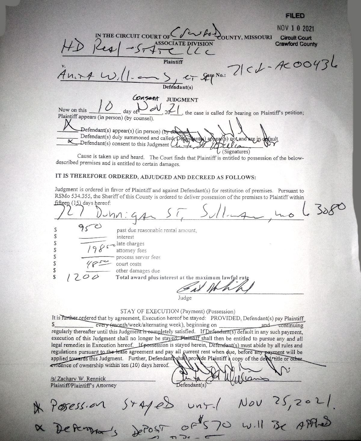 For $3,500 “PLUS” Court Fees, Attorney Fees, and “Pam Nowlin” Service Fees They Want Me Out! – Requesting Close To $4,000. WOW!
