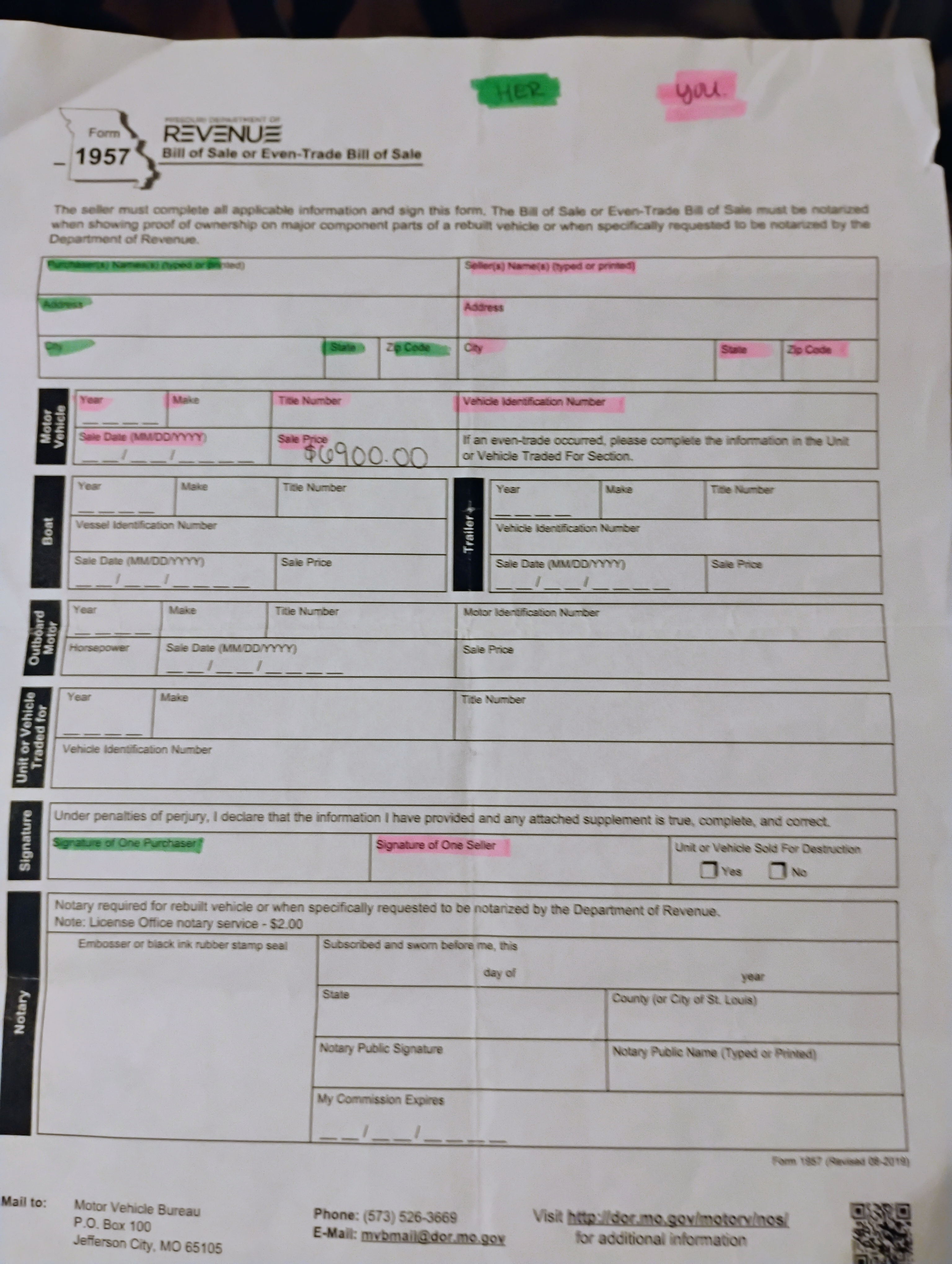 Now, the only way I can move forward is to have (THIS DOCUMENT SIGNED) by Wanda. Then, and only then, would I have a clear path “AWAY” from “UNRIGHTEOUSNESS.” -STAFF AT WEST BRANSON “DMV” EVEN TOOK THE TIME TO HIGHLIGHT THE AREA WANDA NEEDED TO COMPLETE. – VERY, VERY, SIMPLE.